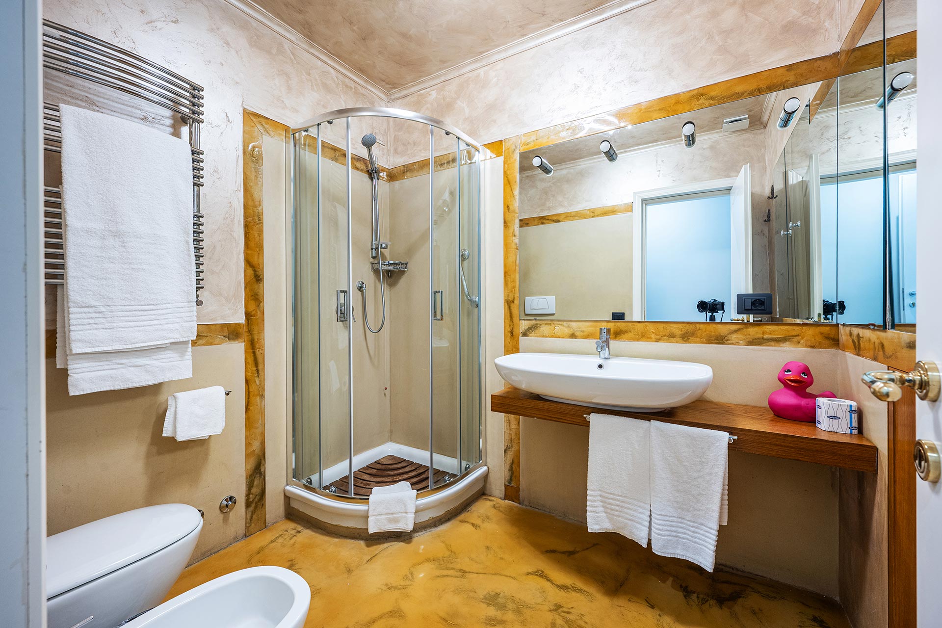 Camera bella, ampia e spaziosa di circa 20m quadri con bagno privato. La camera è più grande rispetto alla media in zona, ed è dotata di tutti i comfort.